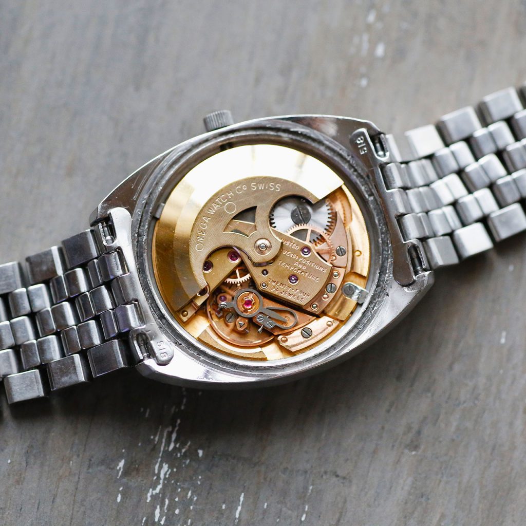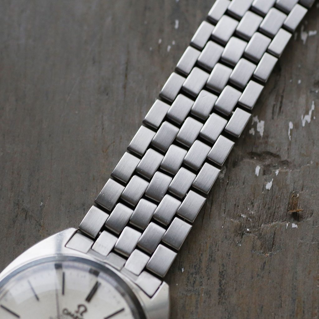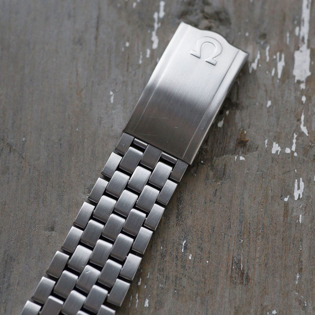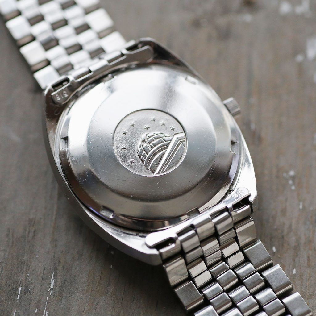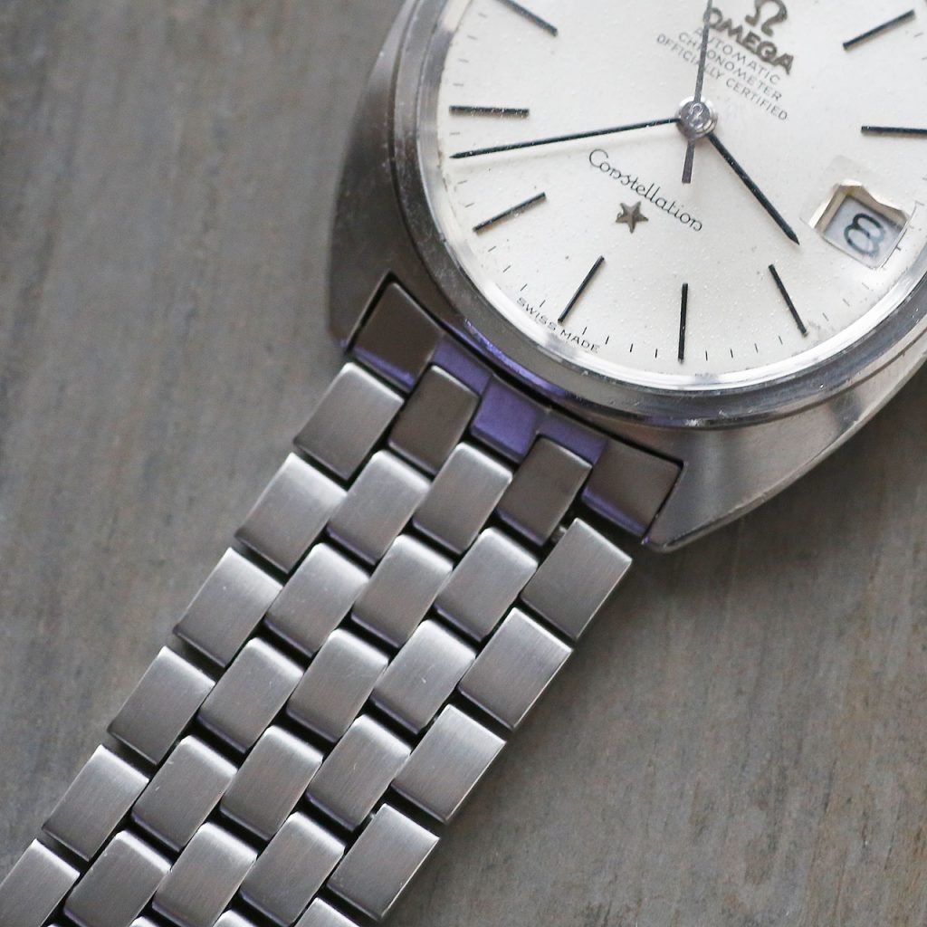 This Omega Constellation features an overhauled and restored Omega 564 automatic movement with push-pull quickset date. The watch runs at 19,800 vph. The movement is automatic winding. The watch is 36mm in diameter but does wear slightly larger due the C-Case design and bracelet. The adjustable Omega bracelet will comfortably fit wrists up to 7 1/4″. The dial, case, movement, crown, crystal, bracelet are all signed Omega. The caseback and crown have new gaskets, and combined with the new crystal, this watch features mid-range water resistance.