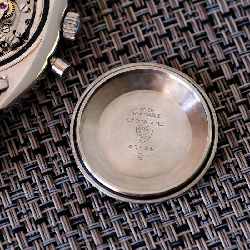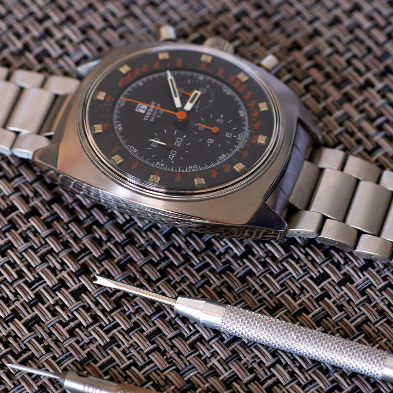 The watch case and original Tissot Gay Frères bracelet are fully restored to OEM finishings and gleam with a lustrous finish. The dial features its original tritium lume. The dial, case, bracelet, crown, movement are all signed Tissot. Possibly the nicest example of this rare Tissot reference available for purchase and fully backed by EmmyWatch’s zero headache warranty. Experience the legacy of high-end Tissot with this coveted chronograph – a true collector’s dream!