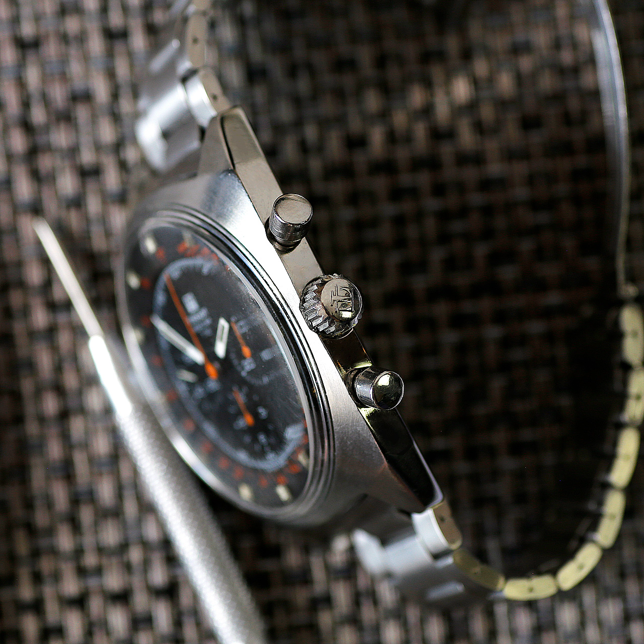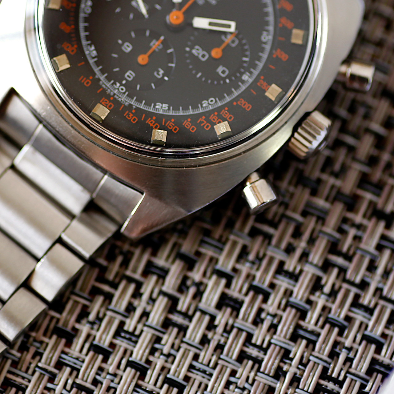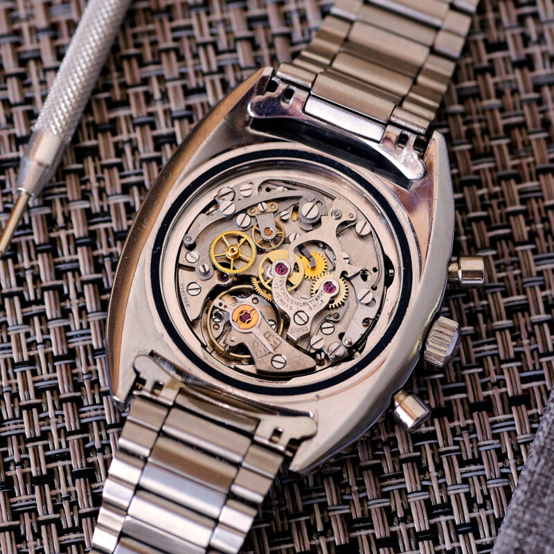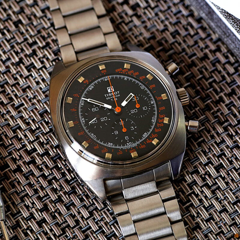 Check out this exquisite 1970s Tissot Seastar T.12 chronograph. With its original dial, striking orange accents, and Lemania 1281 movement, this oversized 42mm watch is truly a standout piece. Fully restored by EmmyWatch and backed by a zero-headache warranty, this Tissot Seastar is a must-have.